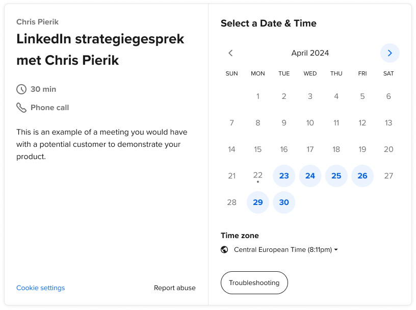 inplannen met Chris, kies